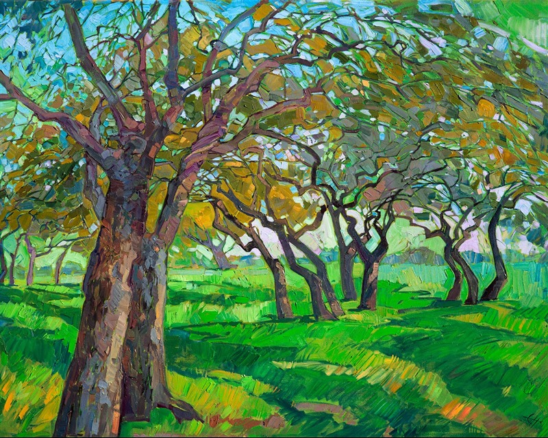 Erin devoted three years to perfecting the technology of 3D art printing in a quest to create a fine art print that captured her vibrant colors and reproduced the texture crucial to her artistic vision. The rhythms of texture in her luscious, impasto oil paintings communicate the movement and joy she finds in nature.