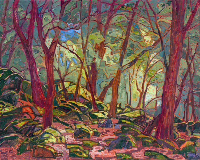 Erin devoted three years to perfecting the technology of 3D art printing in a quest to create a fine art print that captured her vibrant colors and reproduced the texture crucial to her artistic vision. The rhythms of texture in her luscious, impasto oil paintings communicate the movement and joy she finds in nature.