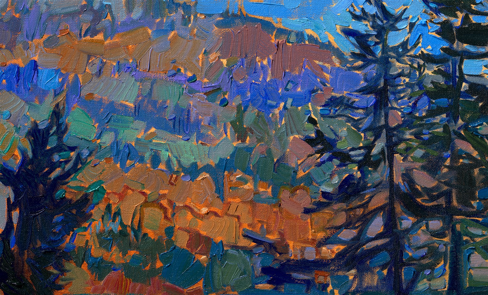 Erin Hanson's 3D Textured Replicas are almost indistinguishable from the original painting from a short distance away, capturing the texture of every brush stroke and weave of the canvas, as well as the vibrant colors of the original oil painting. These are the most realistic painting reproductions available with today's 3D scanning and printing technology.
