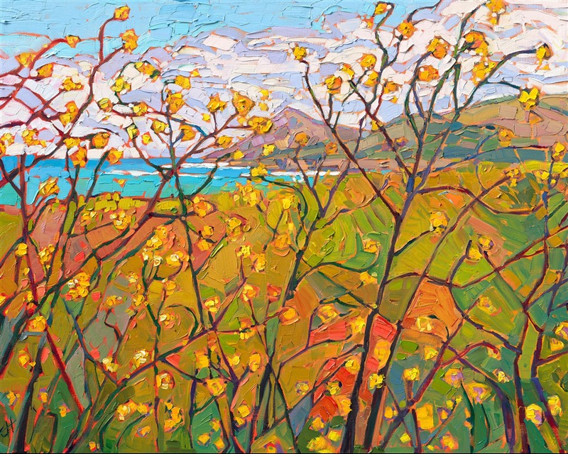 Erin devoted three years to perfecting the technology of 3D art printing in a quest to create a fine art print that captured her vibrant colors and reproduced the texture crucial to her artistic vision. The rhythms of texture in her luscious, impasto oil paintings communicate the movement and joy she finds in nature.