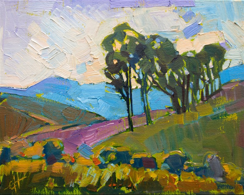 Style: "Open Impressionism" is a new style of painting developed by American artist Erin Hanson. The style is characterized by short, impasto brush strokes that are applied without layering, creating a mosaic or stained-glass appearance to the paintings. The paintings are created with a limited palette of colors, applied without blending or mixing upon the canvas, which adds a dimension of texture to each brush stroke. Inspired by classic impressionism, pointillism, and post-impressionism, Erin Hanson continues the tradition of impressionism into the modern day with her colorful and vivacious landscape paintings.