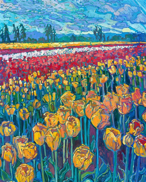 "Northwest Tulips" is an original oil painting by Erin Hanson. It is available for purchase through The Erin Hanson Gallery in McMinnville, Oregon.