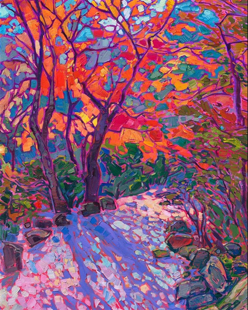 Erin Hanson's 3D Textured Replicas are almost indistinguishable from the original painting from a short distance away, capturing the texture of every brush stroke and weave of the canvas, as well as the vibrant colors of the original oil painting. These are the most realistic painting reproductions available with today's 3D scanning and printing technology.
