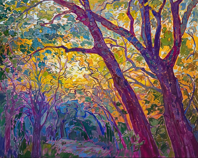 Erin devoted three years to perfecting the technology of 3D art printing in a quest to create a fine art print that captured her vibrant colors and reproduced the texture crucial to her artistic vision. The rhythms of texture in her luscious, impasto oil paintings communicate the movement and joy she finds in nature.