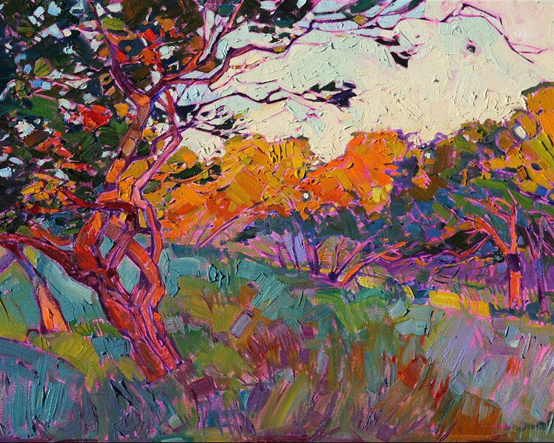 Style: "Open Impressionism" is a new style of painting developed by American artist Erin Hanson. The style is characterized by short, impasto brush strokes that are applied without layering, creating a mosaic or stained-glass appearance to the paintings. The paintings are created with a limited palette of colors, applied without blending or mixing upon the canvas, which adds a dimension of texture to each brush stroke. Inspired by classic impressionism, pointillism, and post-impressionism, Erin Hanson continues the tradition of impressionism into the modern day with her colorful and vivacious landscape paintings.