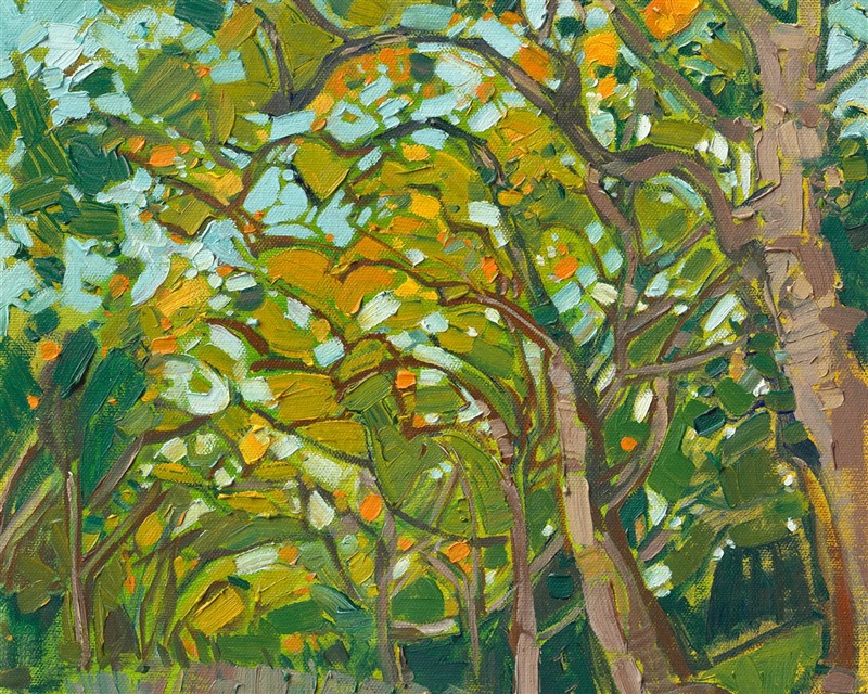 Erin devoted three years to perfecting the technology of 3D art printing in a quest to create a fine art print that captured her vibrant colors and reproduced the texture crucial to her artistic vision. The rhythms of texture in her luscious, impasto oil paintings communicate the movement and joy she finds in nature.