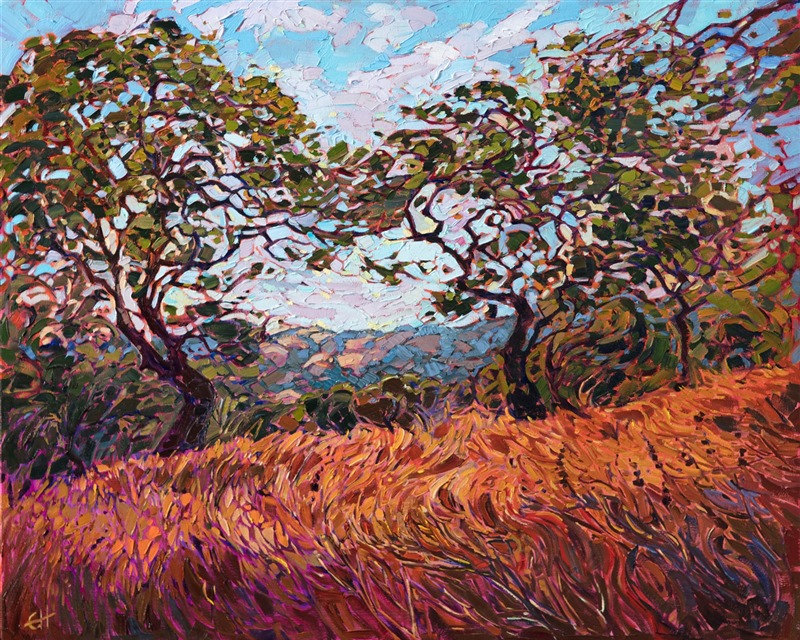 Erin devoted three years to perfecting the technology of 3D art printing in a quest to create a fine art print that captured her vibrant colors and reproduced the texture crucial to her artistic vision. The rhythms of texture in her luscious, impasto oil paintings communicate the movement and joy she finds in nature.