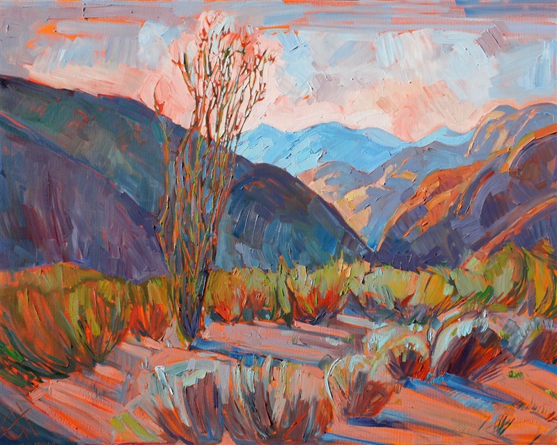 This painting uses thick brush strokes and a loose hand to capture the spontaneous feeling the artist gets while out in the desert.
