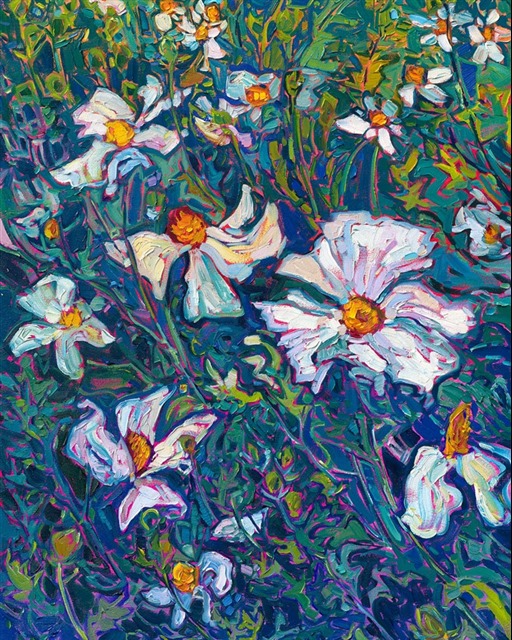 Erin devoted three years to perfecting the technology of 3D art printing in a quest to create a fine art print that captured her vibrant colors and reproduced the texture crucial to her artistic vision. The rhythms of texture in her luscious, impasto oil paintings communicate the movement and joy she finds in nature.