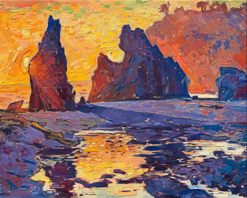 Ruby Beach was my favorite part of Olympic National Park in Washington state. The dramatic rock stacks created some of the most interesting coastline I've ever painted. I loved how the entire landscape became bathed in rich hues of orange and purple as the sun sank to the horizon.