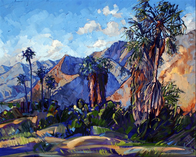 Style: "Open Impressionism" is a new style of painting developed by American artist Erin Hanson. The style is characterized by short, impasto brush strokes that are applied without layering, creating a mosaic or stained-glass appearance to the paintings. The paintings are created with a limited palette of colors, applied without blending or mixing upon the canvas, which adds a dimension of texture to each brush stroke. Inspired by classic impressionism, pointillism, and post-impressionism, Erin Hanson continues the tradition of impressionism into the modern day with her colorful and vivacious landscape paintings.