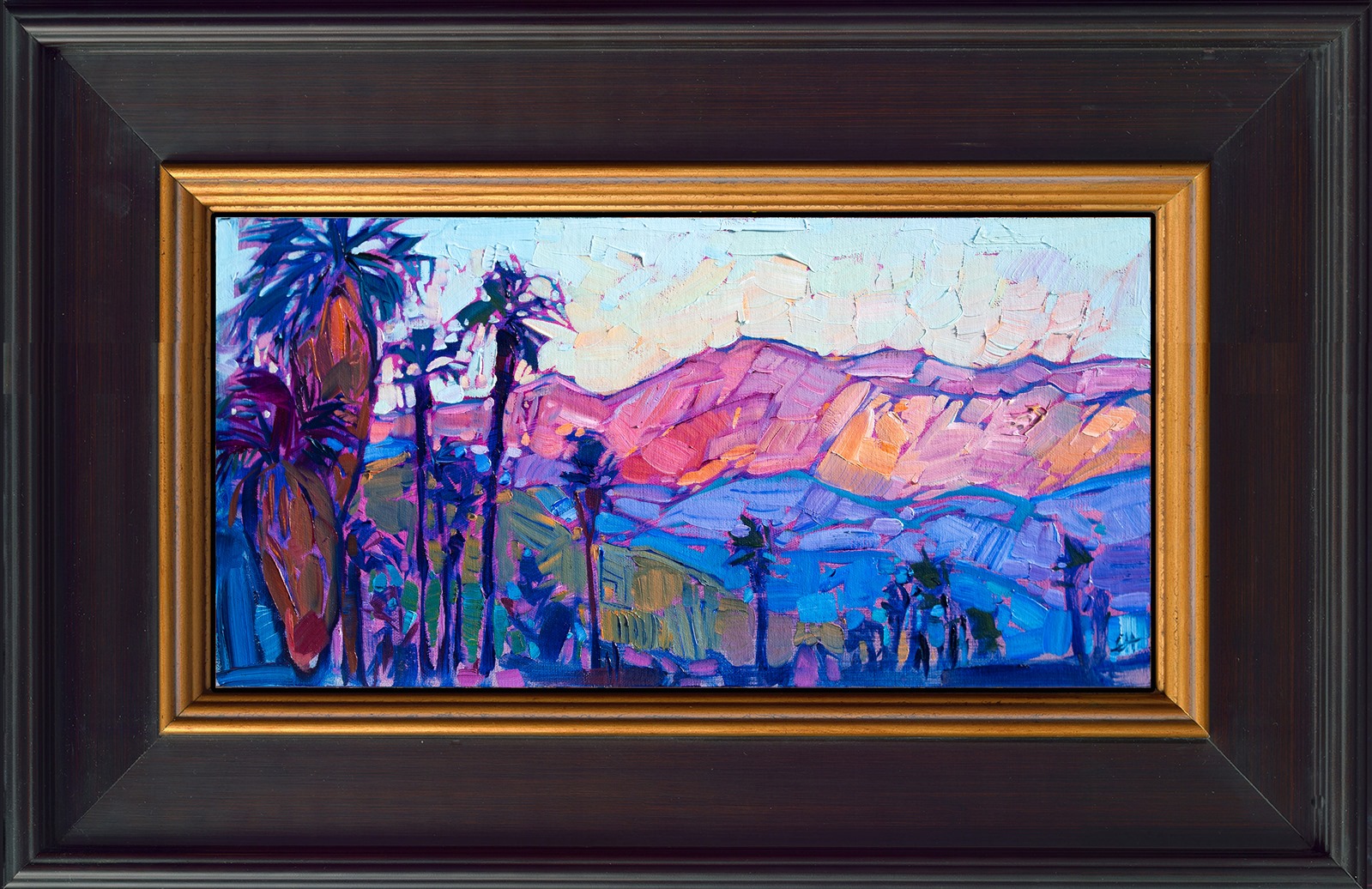 This plein air molding is custom-made for Erin Hanson. The rich, almost-black frame has a pop of gold along the inner lip. This molding is perfect for bringing out the colors of a Hanson painting. The molding is 3.5” wide.