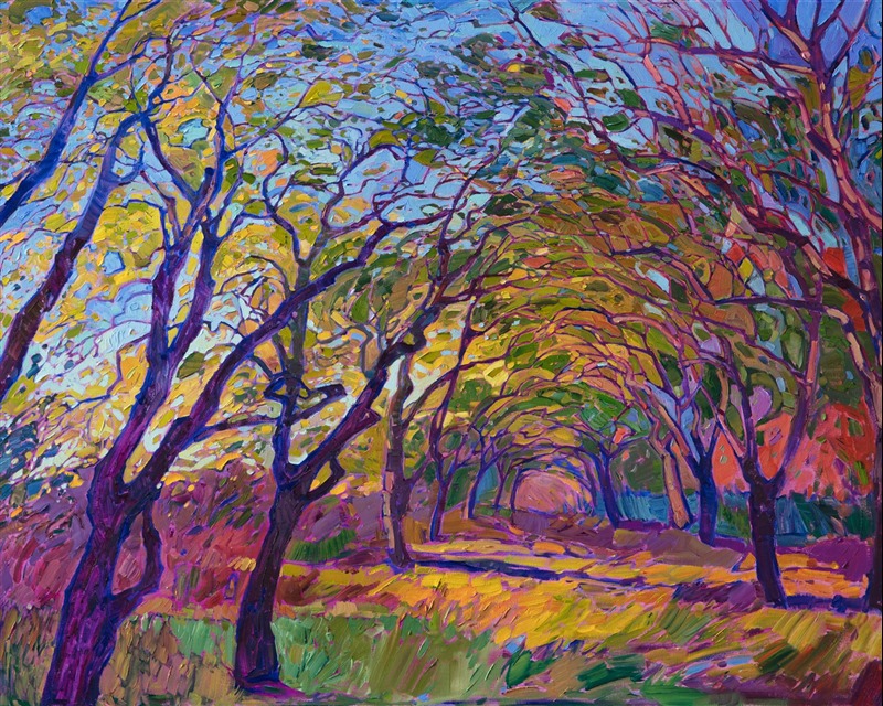 Erin devoted three years to perfecting the technology of 3D art printing in a quest to create a fine art print that captured her vibrant colors and reproduced the texture crucial to her artistic vision. The rhythms of texture in her luscious, impasto oil paintings communicate the movement and joy she finds in nature.