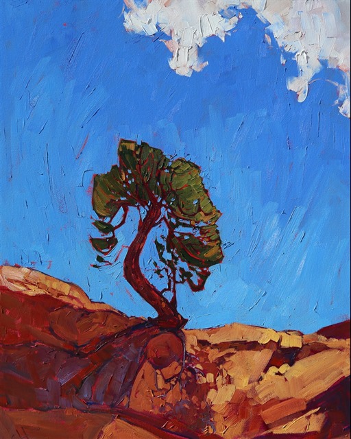 ERIN HANSON has been painting in oils since she was 8 years old. As a teenager, she apprenticed at a mural studio where she worked on 40-foot-long paintings while selling art commissions on the side. After being told it was too hard to make a living as an artist, she got her degree in Bioengineering from UC Berkeley. Afterward, Erin became a rock climber at Red Rock Canyon, Nevada. Inspired by the colorful scenery she was climbing, she decided to return to her love of painting and create one new painting every week.