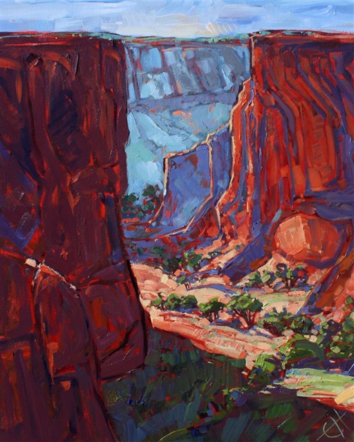 High contrast colors at Canyon de Chelly, Arizona. The brush strokes are thick and impressionistic.