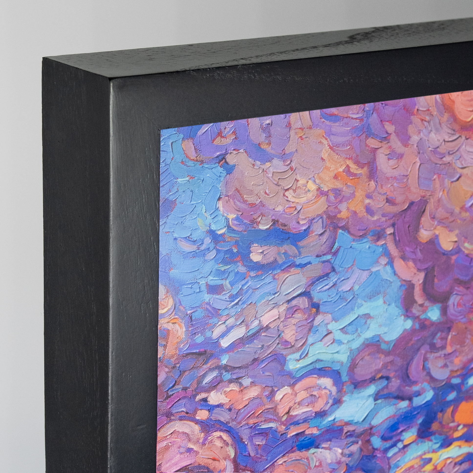 Unframed Canvas: Erin Hanson stretched canvas prints arrive pre-stretched onto 1-1/2” stretcher bars. The sides of the print are printed black. This print can be hung un-framed, as-is, or you may take it to your local framer and have it framed in a floater frame.