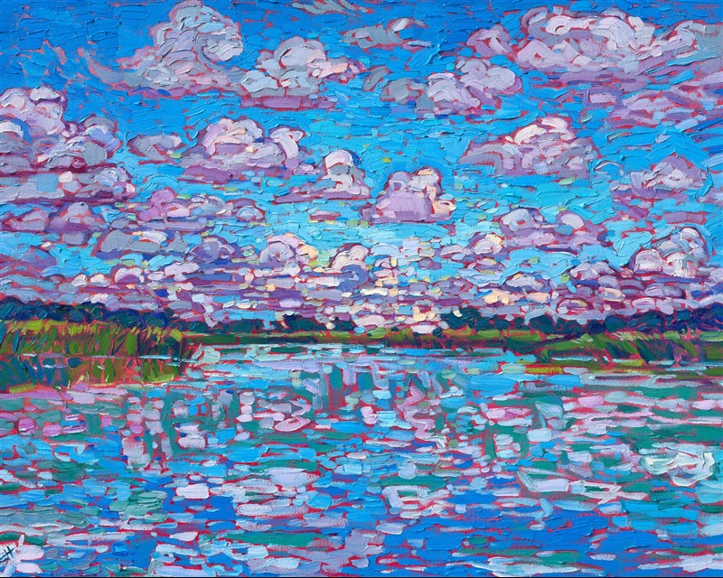 The piece will be displayed at Erin Hanson's solo museum show Erin Hanson: Alchemist of Color at the Channel Islands Maritime Museum in Oxnard, California. You may purchase this painting now, but the piece will not be delivered until after the show ends on December 28th, 2023.