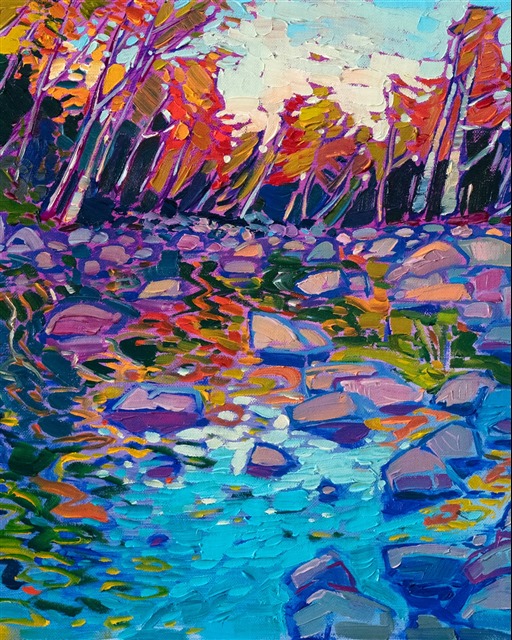 Erin Hanson's 3D Textured Replicas are almost indistinguishable from the original painting from a short distance away, capturing the texture of every brush stroke and weave of the canvas, as well as the vibrant colors of the original oil painting. These are the most realistic painting reproductions available with today's 3D scanning and printing technology.