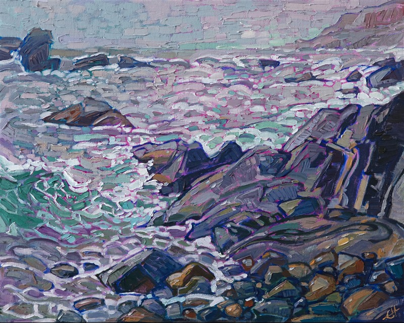 Style: "Open Impressionism" is a new style of painting developed by American artist Erin Hanson. The style is characterized by short, impasto brush strokes that are applied without layering, creating a mosaic or stained-glass appearance to the paintings. The paintings are created with a limited palette of colors, applied without blending or mixing upon the canvas, which adds a dimension of texture to each brush stroke. Inspired by classic impressionism, pointillism, and post-impressionism, Erin Hanson continues the tradition of impressionism into the modern day with her colorful and vivacious landscape paintings.
