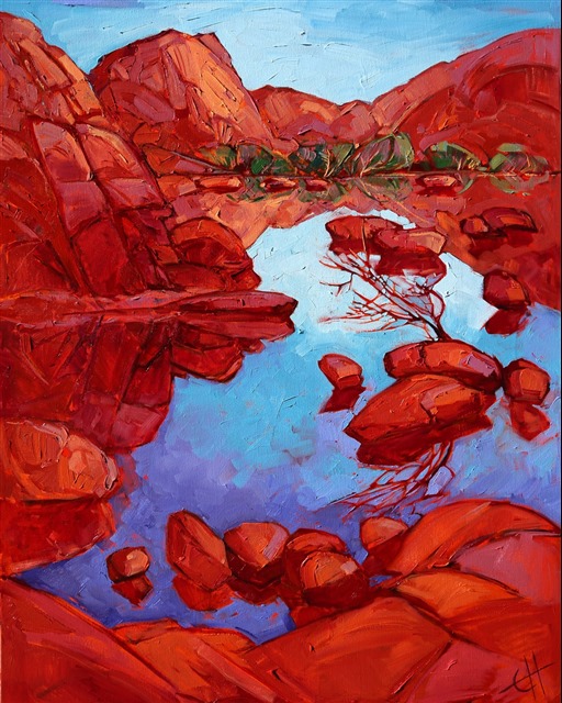 ERIN HANSON has been painting in oils since she was 8 years old. As a teenager, she apprenticed at a mural studio where she worked on 40-foot-long paintings while selling art commissions on the side. After being told it was too hard to make a living as an artist, she got her degree in Bioengineering from UC Berkeley. Afterward, Erin became a rock climber at Red Rock Canyon, Nevada. Inspired by the colorful scenery she was climbing, she decided to return to her love of painting and create one new painting every week.