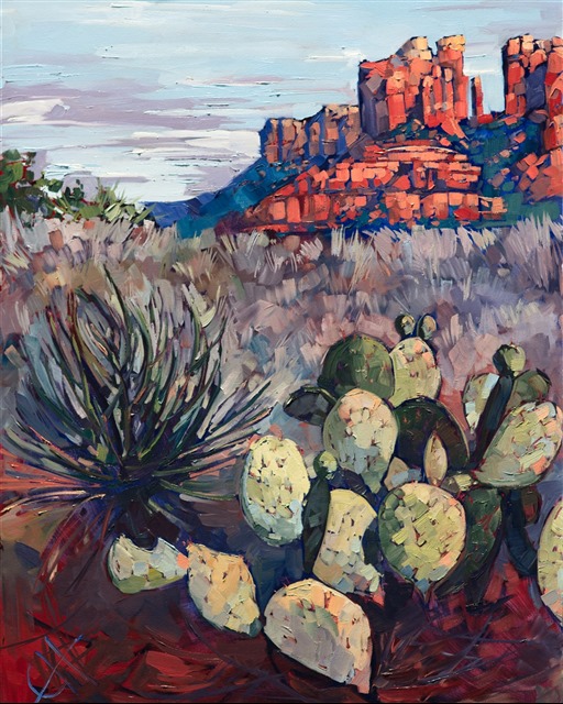 Style: "Open Impressionism" is a new style of painting developed by American artist Erin Hanson. The style is characterized by short, impasto brush strokes that are applied without layering, creating a mosaic or stained-glass appearance to the paintings. The paintings are created with a limited palette of colors, applied without blending or mixing upon the canvas, which adds a dimension of texture to each brush stroke. Inspired by classic impressionism, pointillism, and post-impressionism, Erin Hanson continues the tradition of impressionism into the modern day with her colorful and vivacious landscape paintings.