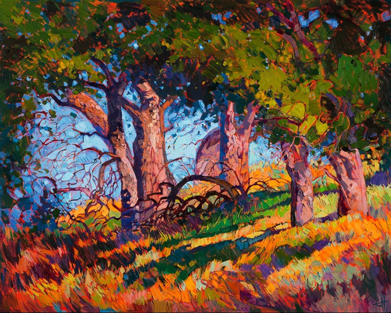 Erin devoted three years to perfecting the technology of 3D art printing in a quest to create a fine art print that captured her vibrant colors and reproduced the texture crucial to her artistic vision. The rhythms of texture in her luscious, impasto oil paintings communicate the movement and joy she finds in nature.