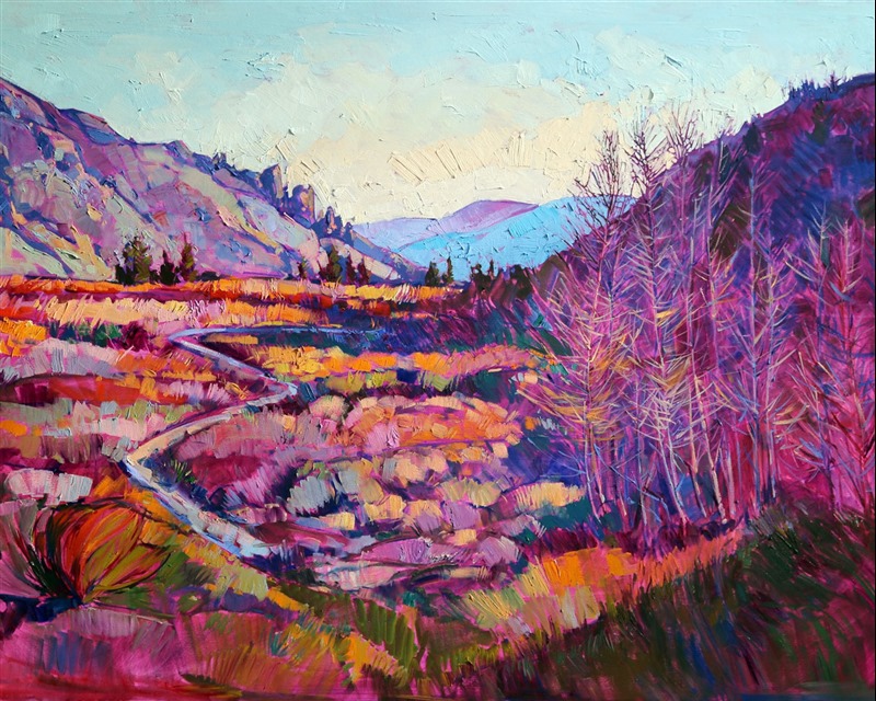 She has stuck to that decision, becoming one of the most prolific artists in history, with over 3,000 oil paintings sold to eager collectors. Erin Hanson’s style is known as "Open Impressionism" and is taught in art schools worldwide. With millions of followers, Hanson has become an iconic, driving force in the rebirth of impressionism, inspiring thousands of other artists to pick up the brush.