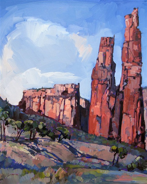 ERIN HANSON has been painting in oils since she was 8 years old. As a teenager, she apprenticed at a mural studio where she worked on 40-foot-long paintings while selling art commissions on the side. After being told it was too hard to make a living as an artist, she got her degree in Bioengineering from UC Berkeley. Afterward, Erin became a rock climber at Red Rock Canyon, Nevada. Inspired by the colorful scenery she was climbing, she decided to return to her love of painting and create one new painting every week.