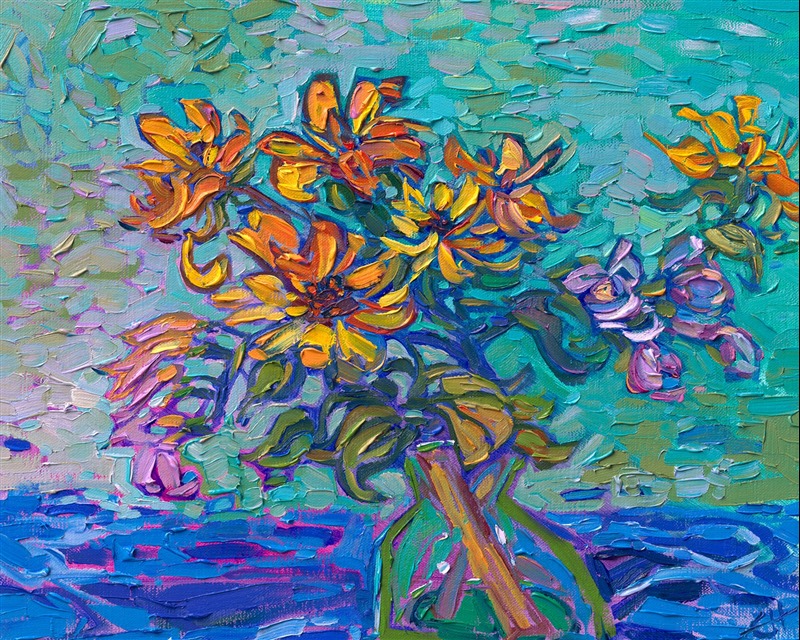 Erin devoted three years to perfecting the technology of 3D art printing in a quest to create a fine art print that captured her vibrant colors and reproduced the texture crucial to her artistic vision. The rhythms of texture in her luscious, impasto oil paintings communicate the movement and joy she finds in nature.