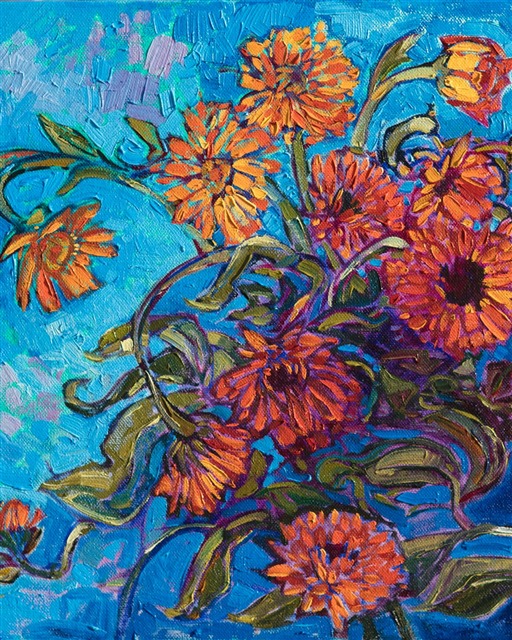 Erin devoted three years to perfecting the technology of 3D art printing in a quest to create a fine art print that captured her vibrant colors and reproduced the texture crucial to her artistic vision. The rhythms of texture in her luscious, impasto oil paintings communicate the movement and joy she finds in nature.