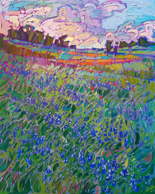 Erin devoted three years to perfecting the technology of 3D art printing in a quest to create a fine art print that captured her vibrant colors and reproduced the texture crucial to her artistic vision. The rhythms of texture in her luscious, impasto oil paintings communicate the movement and joy she finds in nature.