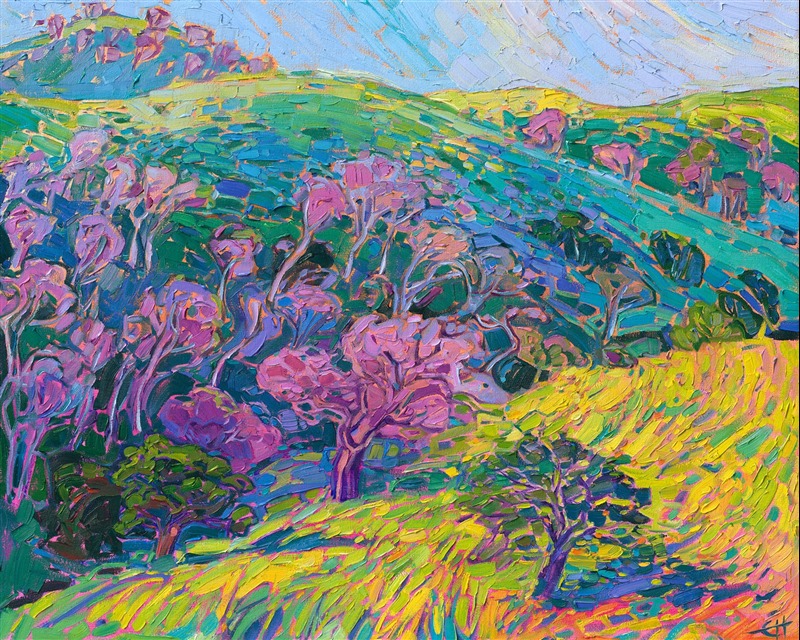 Erin devoted three years to perfecting the technology of 3D art printing in a quest to create a fine art print that captured her vibrant colors and reproduced the texture crucial to her artistic vision. The rhythms of texture in her luscious, impasto oil paintings communicate the movement and joy she finds in nature.