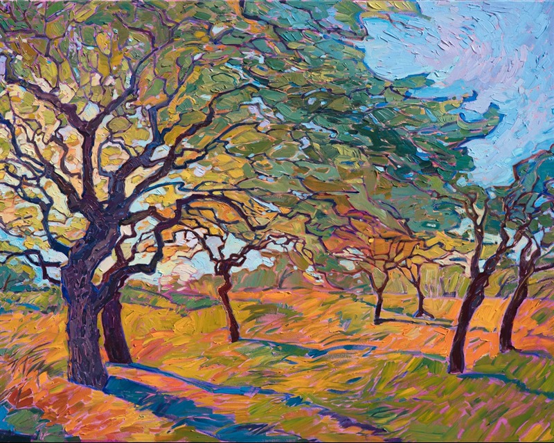 Erin devoted three years to perfecting the technology of 3D art printing in a quest to create a fine art print that captured her vibrant colors and reproduced the texture crucial to her artistic vision. The rhythms of texture in her luscious, impasto oil paintings communicate the movement and joy she finds in nature.