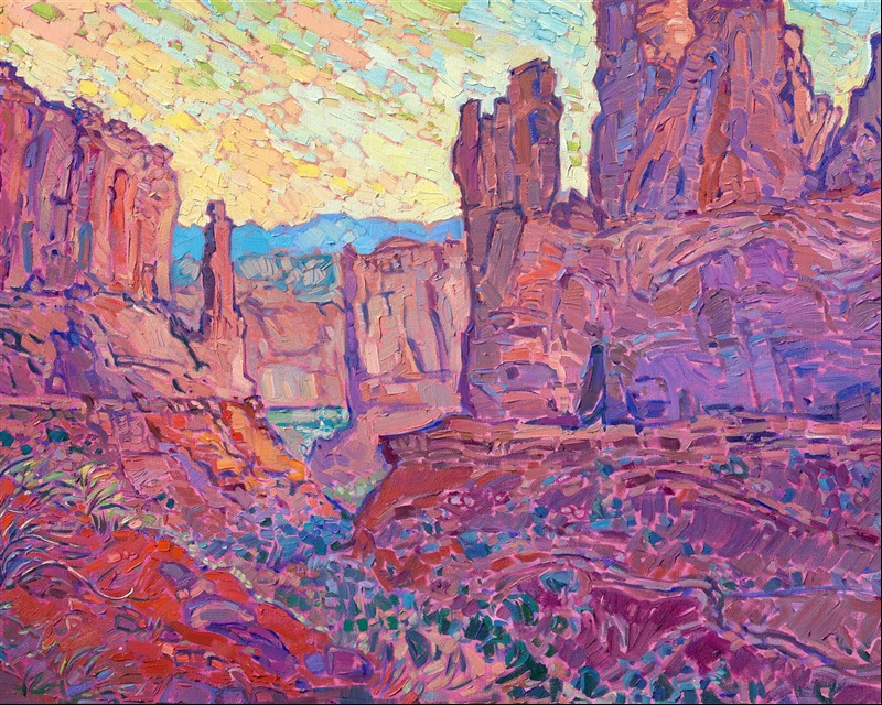 This painting was exhibited at Erin Hanson: Landscapes of the West solo museum exhibition at the Sears Art Museum in St. George, Utah.