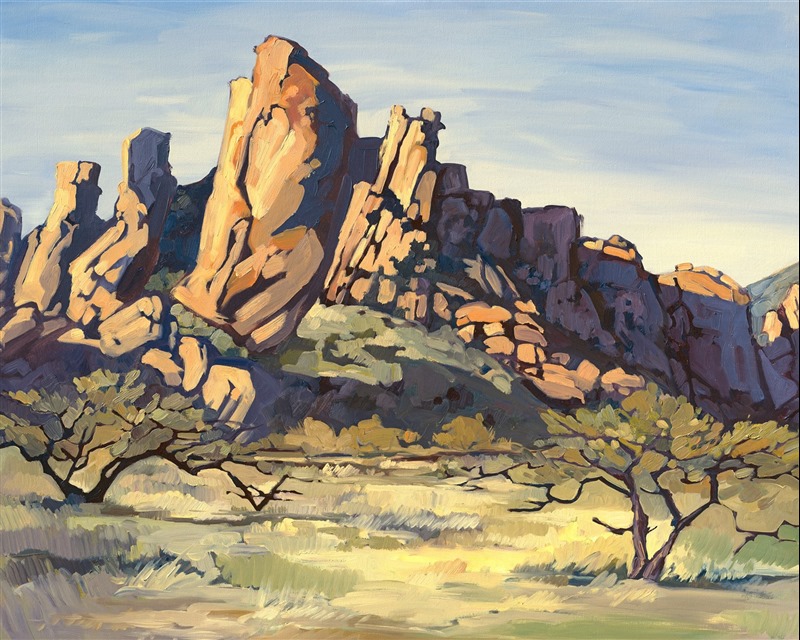ERIN HANSON has been painting in oils since she was 8 years old. As a teenager, she apprenticed at a mural studio where she worked on 40-foot-long paintings while selling art commissions on the side. After being told it was too hard to make a living as an artist, she got her degree in Bioengineering from UC Berkeley. Afterward, Erin became a rock climber at Red Rock Canyon, Nevada. Inspired by the colorful scenery she was climbing, she decided to return to her love of painting and create one new painting every week.