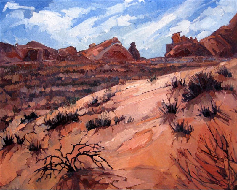 ERIN HANSON has been painting in oils since she was 8 years old. As a teenager, she apprenticed at a mural studio where she worked on 40-foot-long paintings while selling art commissions on the side. After being told it was too hard to make a living as an artist, she got her degree in Bioengineering from UC Berkeley. Afterward, Erin became a rock climber at Red Rock Canyon, Nevada. Inspired by the colorful scenery she was climbing, she decided to return to her love of painting and create one new painting every week.