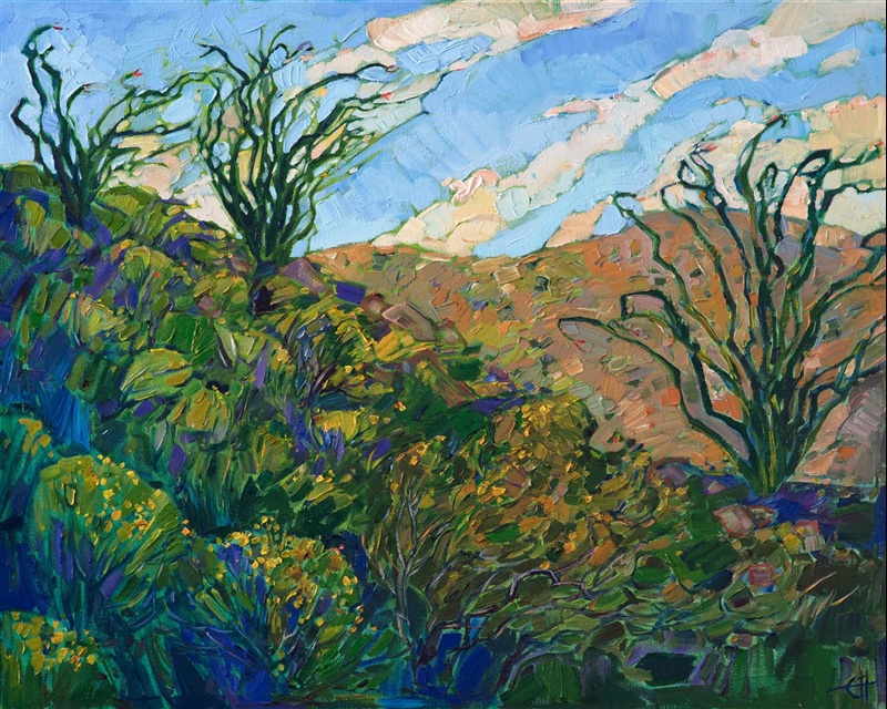 Erin devoted three years to perfecting the technology of 3D art printing in a quest to create a fine art print that captured her vibrant colors and reproduced the texture crucial to her artistic vision. The rhythms of texture in her luscious, impasto oil paintings communicate the movement and joy she finds in nature.