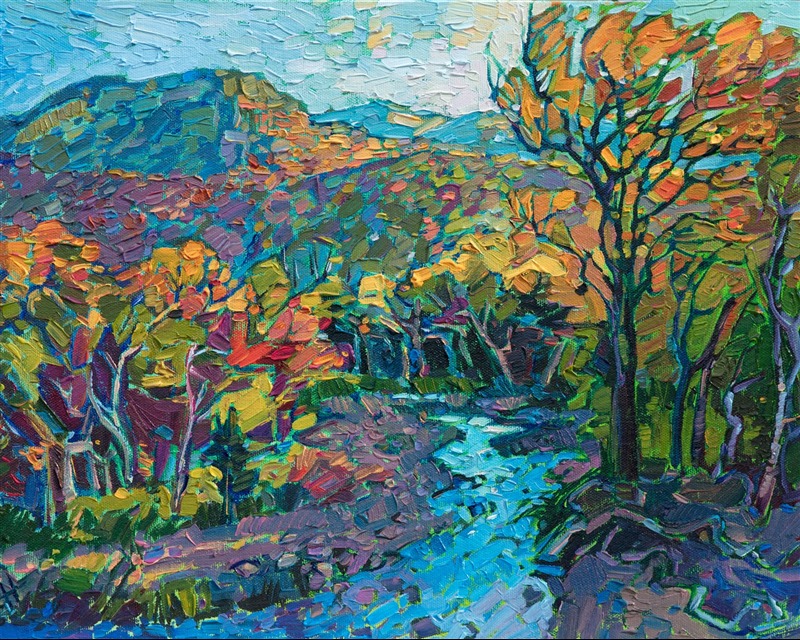 Erin devoted three years to perfecting the technology of 3D art printing in a quest to create a fine art print that captured her vibrant colors and reproduced the texture crucial to her artistic vision. The rhythms of texture in her luscious, impasto oil paintings communicate the movement and joy she finds in nature.