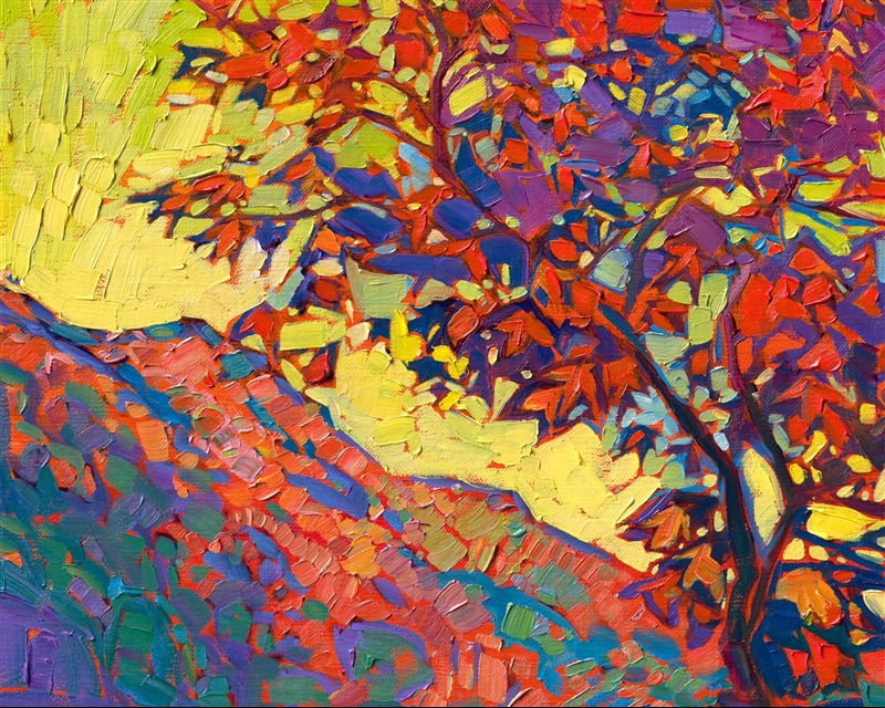 Erin devoted three years to perfecting the technology of 3D art printing in a quest to create a fine art print that captured her vibrant colors and reproduced the texture crucial to her artistic vision. The rhythms of texture in her luscious, impasto oil paintings communicate the movement and joy she finds in nature.