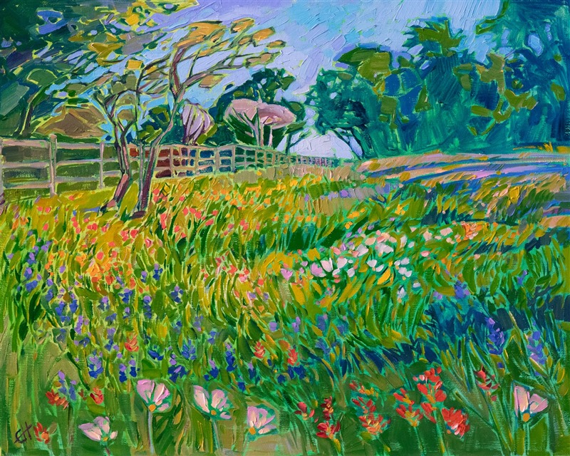 Erin devoted three years to perfecting the technology of 3D art printing in a quest to create a fine art print that captured her vibrant colors and reproduced the texture crucial to her artistic vision. The rhythms of texture in her luscious, impasto oil paintings communicate the movement and joy she finds in nature.