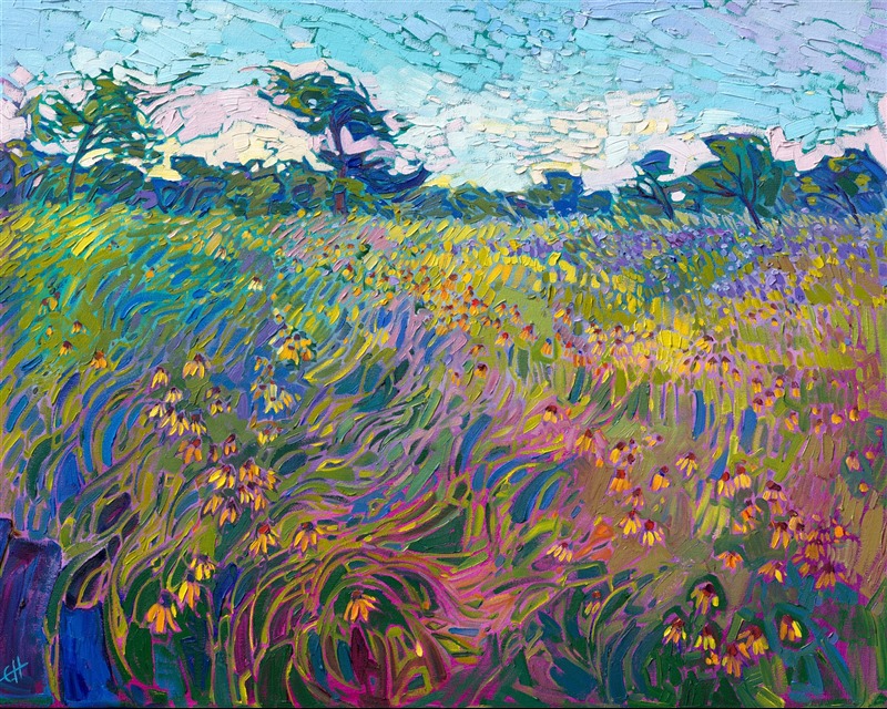 Erin devoted three years to perfecting the technology of 3D art printing in a quest to create a fine art print that captured her vibrant colors and reproduced the texture crucial to her artistic vision. The rhythms of texture in her luscious, impasto oil paintings communicate the movement and joy she finds in nature.