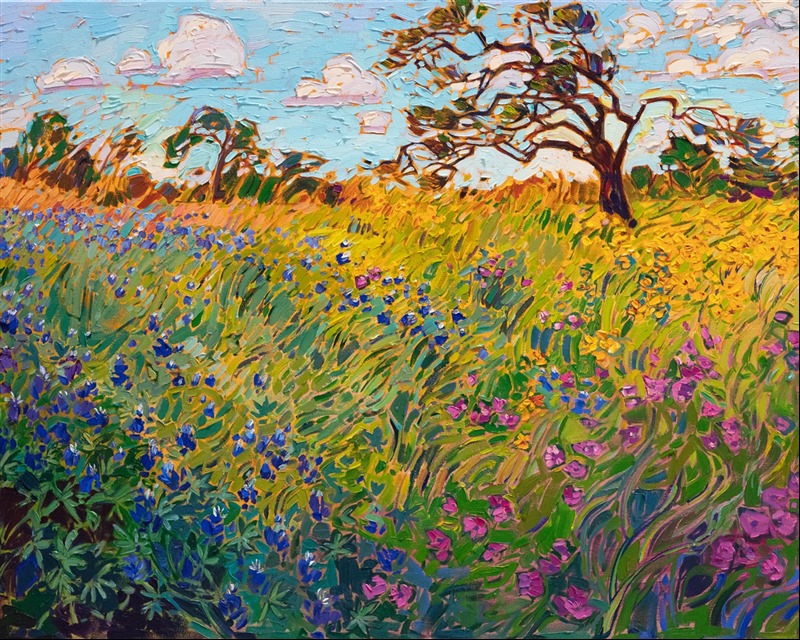 Erin devoted three years to perfecting the technology of 3D art printing in a quest to create a fine art print that captured her vibrant colors and reproduced the texture crucial to her artistic vision. The rhythms of texture in her luscious, impasto oil paintings communicate the movement and joy she finds in nature.