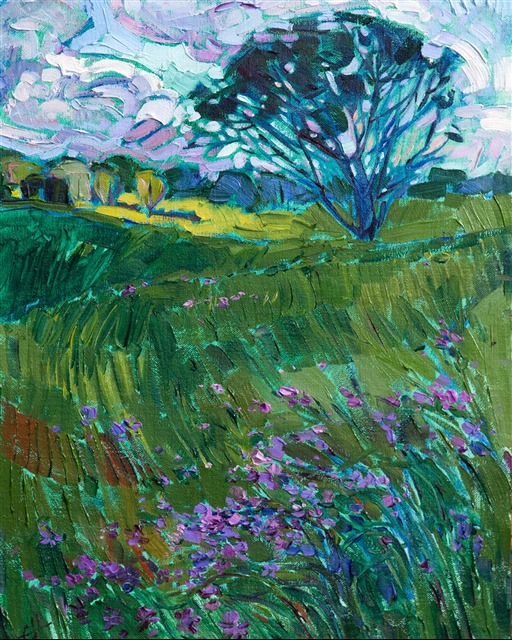 Erin devoted three years to perfecting the technology of 3D art printing in a quest to create a fine art print that captured her vibrant colors and reproduced the texture crucial to her artistic vision. The rhythms of texture in her luscious, impasto oil paintings communicate the movement and joy she finds in nature.
