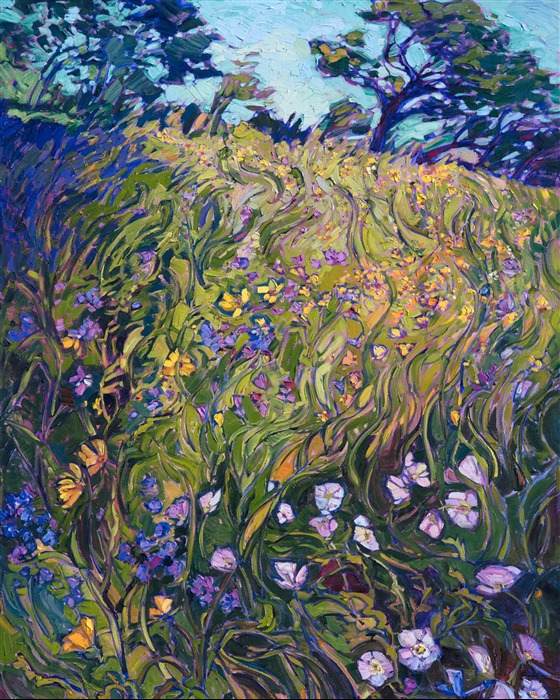 Erin devoted three years to perfecting the technology of 3D art printing in a quest to create a fine art print that captured her vibrant colors and reproduced the texture crucial to her artistic vision. The rhythms of texture in her luscious, impasto oil paintings communicate the movement and joy she finds in nature.