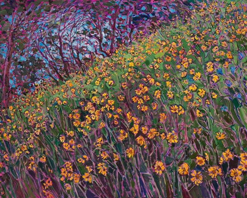 Erin devoted three years to perfecting the technology of 3D art printing in a quest to create a fine art print that captured her vibrant colors and reproduced the texture crucial to her artistic vision. The rhythms of texture in her luscious, impasto oil paintings communicate the movement and joy she finds in nature.