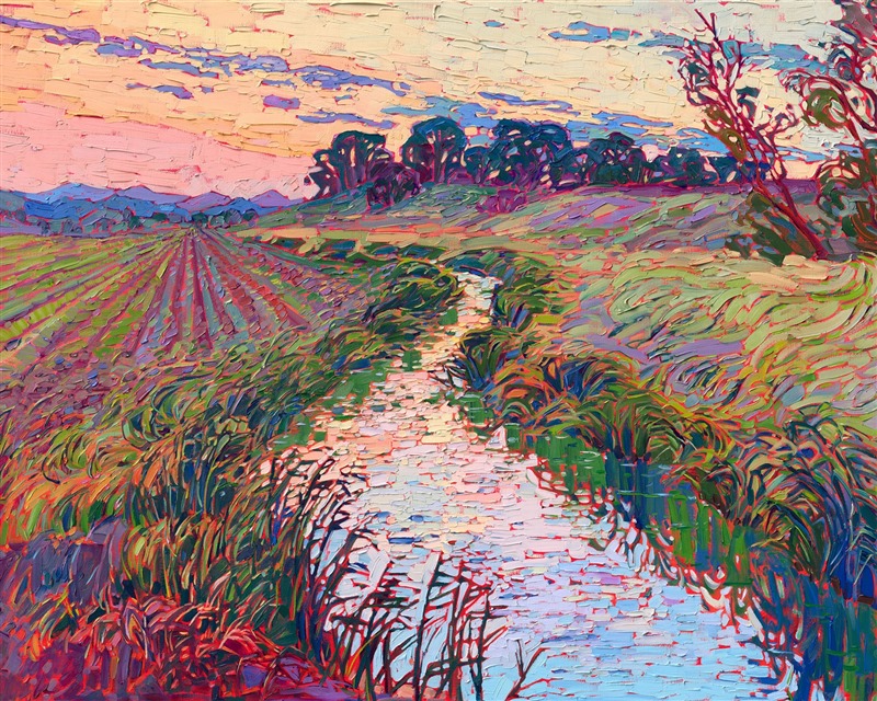 Erin devoted three years to perfecting the technology of 3D art printing in a quest to create a fine art print that captured her vibrant colors and reproduced the texture crucial to her artistic vision. The rhythms of texture in her luscious, impasto oil paintings communicate the movement and joy she finds in nature.