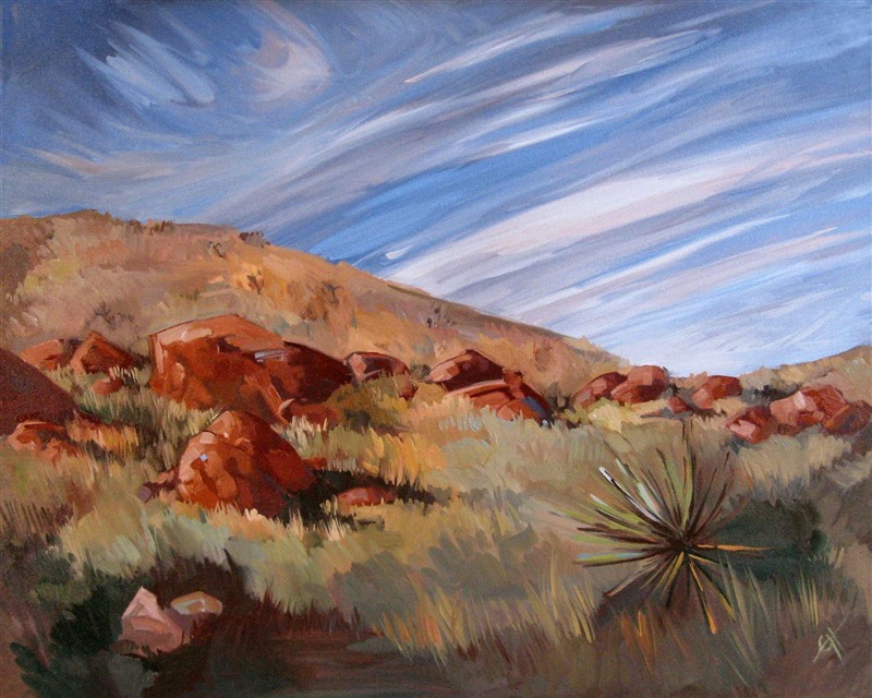 ERIN HANSON has been painting in oils since she was 8 years old. As a teenager, she apprenticed at a mural studio where she worked on 40-foot-long paintings while selling art commissions on the side. After being told it was too hard to make a living as an artist, she got her degree in Bioengineering from UC Berkeley. Afterward, Erin became a rock climber at Red Rock Canyon, Nevada. Inspired by the colorful scenery she was climbing, she decided to return to her love of painting and create one new painting every week.