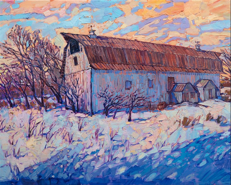 This snow painting is a commission of an old family barn that has stood the test of time.