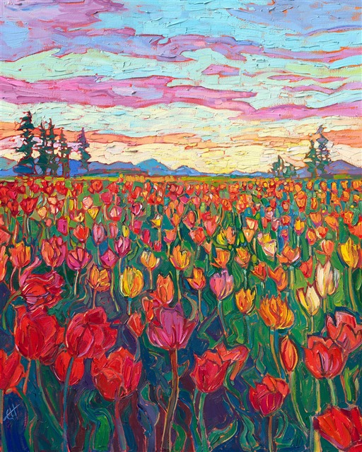 She has stuck to that decision, becoming one of the most prolific artists in history, with over 3,000 oil paintings sold to eager collectors. Erin Hanson’s style is known as "Open Impressionism" and is taught in art schools worldwide. With millions of followers, Hanson has become an iconic, driving force in the rebirth of impressionism, inspiring thousands of other artists to pick up the brush.