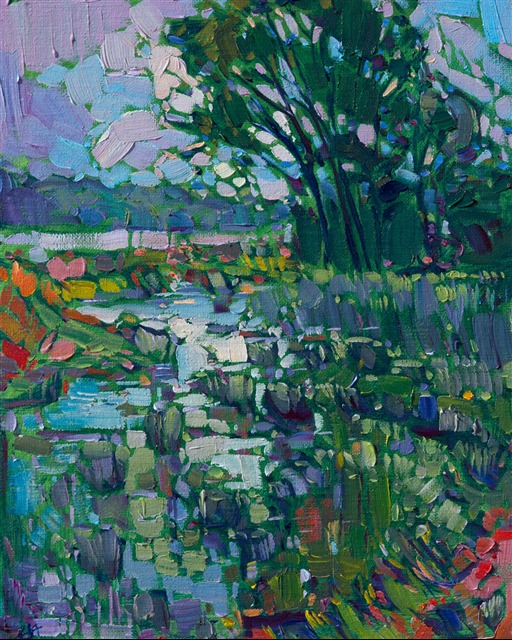 Erin devoted three years to perfecting the technology of 3D art printing in a quest to create a fine art print that captured her vibrant colors and reproduced the texture crucial to her artistic vision. The rhythms of texture in her luscious, impasto oil paintings communicate the movement and joy she finds in nature.